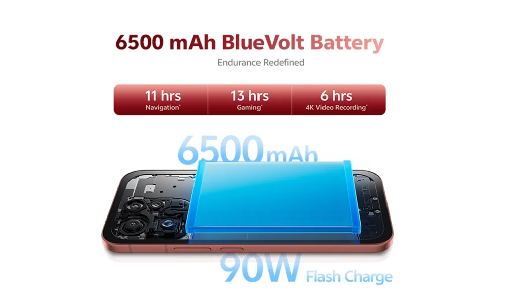The Vivo V70 comes with vivo’s semi-solid 6,500mAh battery, delivering long-lasting power for demanding tasks. It can handle up to 11 hours of PUBG or 5 hours of 4K video recording at 60fps. Designed for extreme conditions, the battery runs Google Maps for 10 hours at 40°C (104°F) in hot environments and 8 hours at -20°C (-4°F) in cold climates. Fast charging is supported with 90W vivo FlashCharge, keeping the device powered quickly and efficiently.